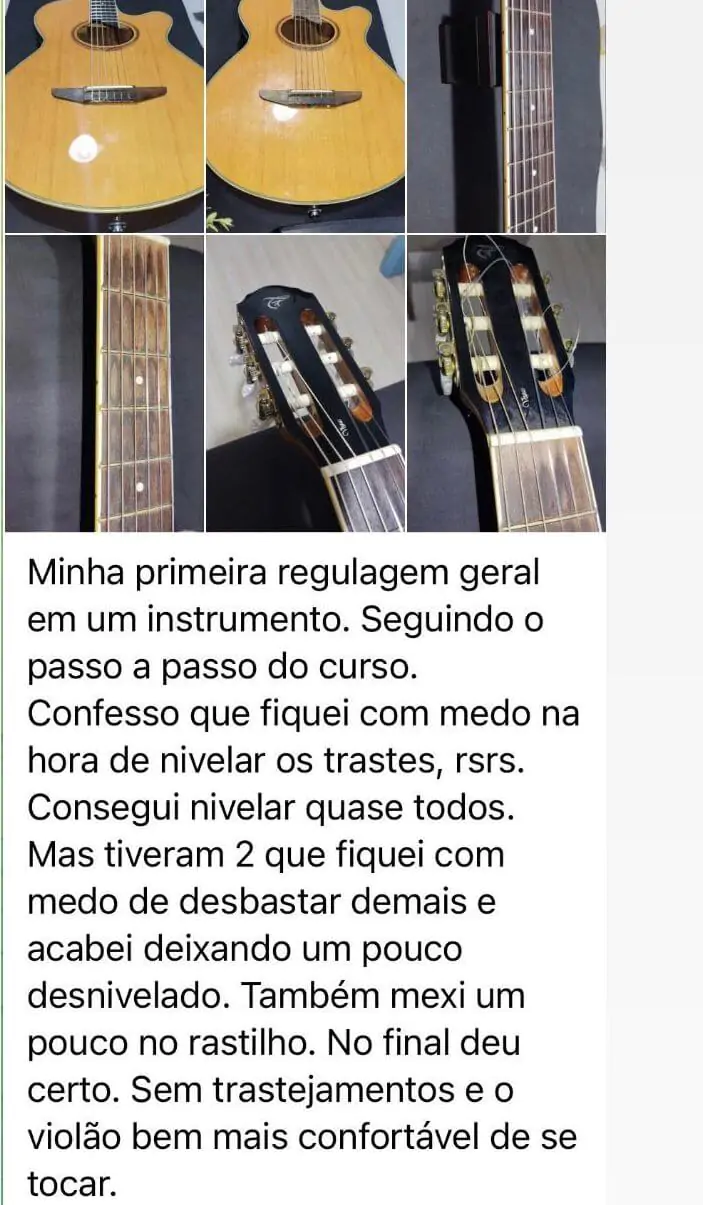 Atualmente com mais 1.100 alunos em seus cursos de luthieria em todas as regiões do Brasil, músicos e luthiers que regulam e tiram o máximo conforto que seus instrumentos tem para oferecer.